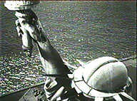 Cも高さを感じさせる合成カット。手首から下が恐らくマット画だと思われます。それに海面を合成し、なおかつ画面左下には、ちゃんと地上の人物をハメ込んでます。